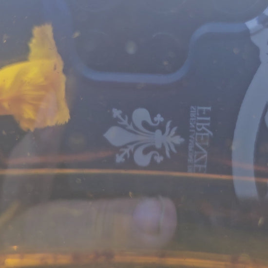 Una splendida betta Plakat maschio completamente bianca, senza alcuna macchia o sfumatura. Le pinne pettorali sono grandi, tipiche del tipo Dumbo.
