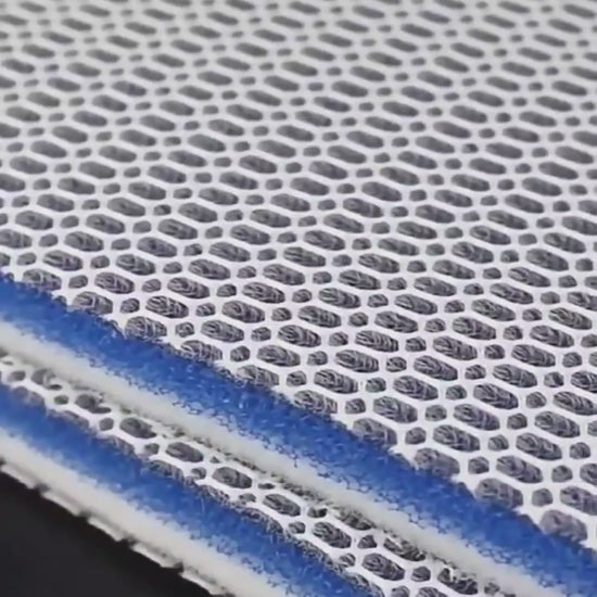 Il tappetino può essere facilmente tagliato e adattato a qualsiasi tipo di filtro. Non si sfilaccia, è impilabile e resistente ai lavaggi ripetuti (oltre 300 cicli) senza perdere struttura o efficienza.