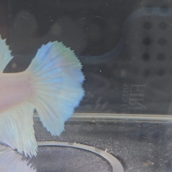 Femmina di Betta Halfmoon Bianco Puro / Azzurro Chiaro
