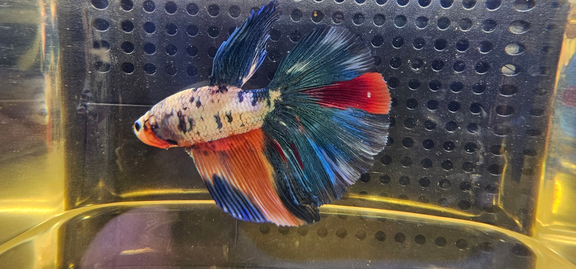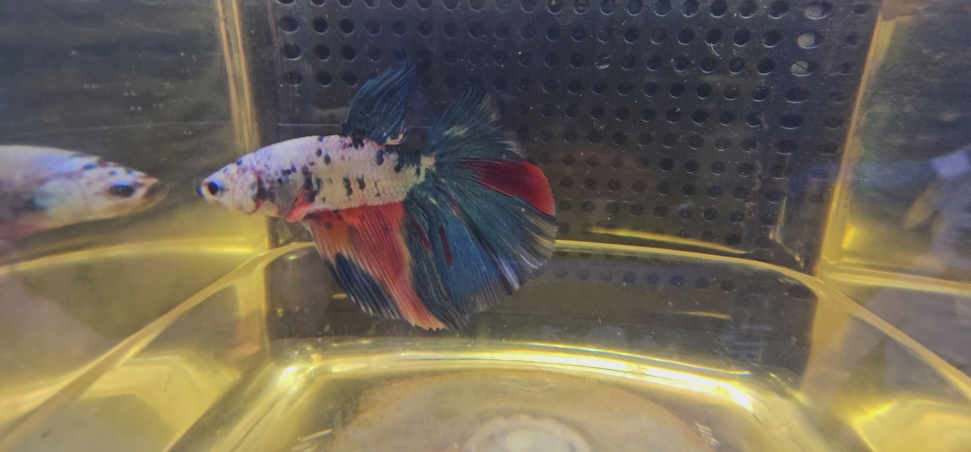 Maschio di Betta Halfmoon Candy Bianco