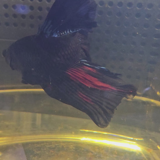 Maschio di Betta Halfmoon Nero e Rosso