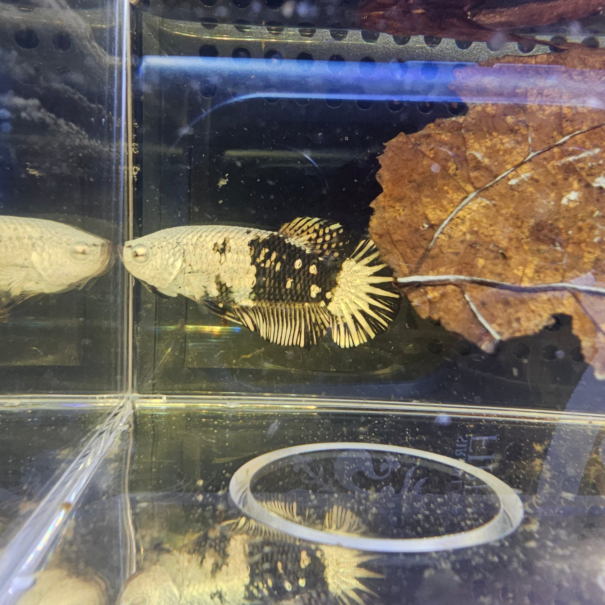 Femmina di Betta Plakat Black Samurai con coda a raggi, colore pieno