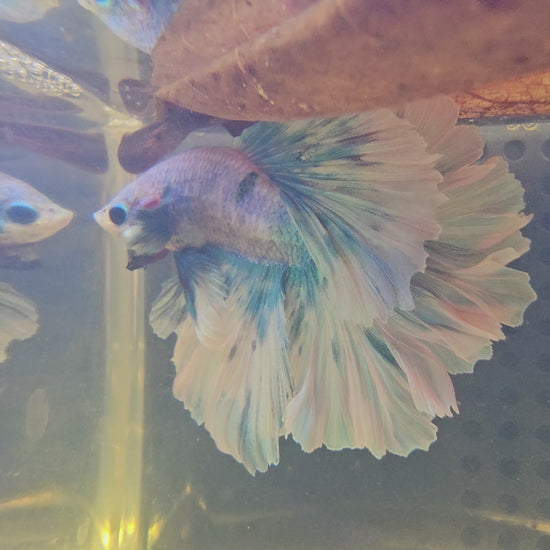 Maschio di Betta Halfmoon Feather Tail (Apache) Blu e Bianco Porcellana