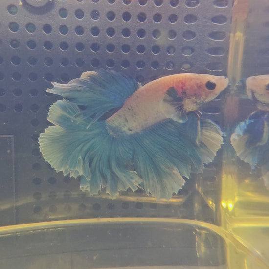 Maschio di Betta Halfmoon Feather Tail (Apache) Blu Inchiostro
