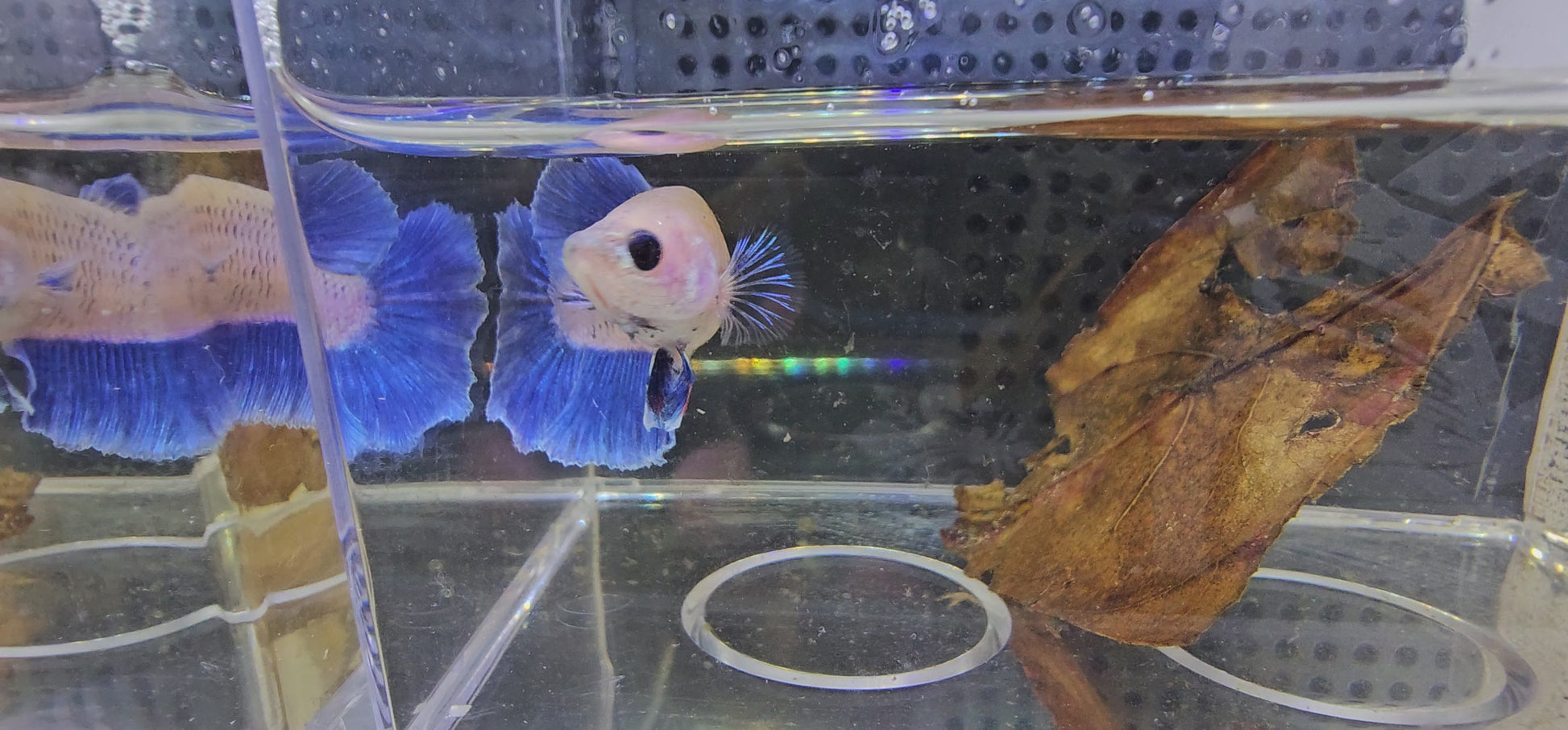 Femmina di Betta Halfmoon Feather Tail color Porcellana Blu