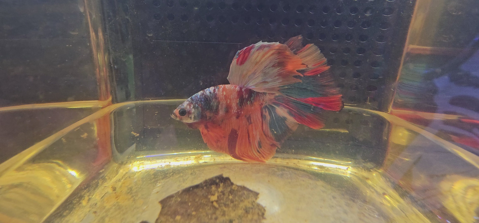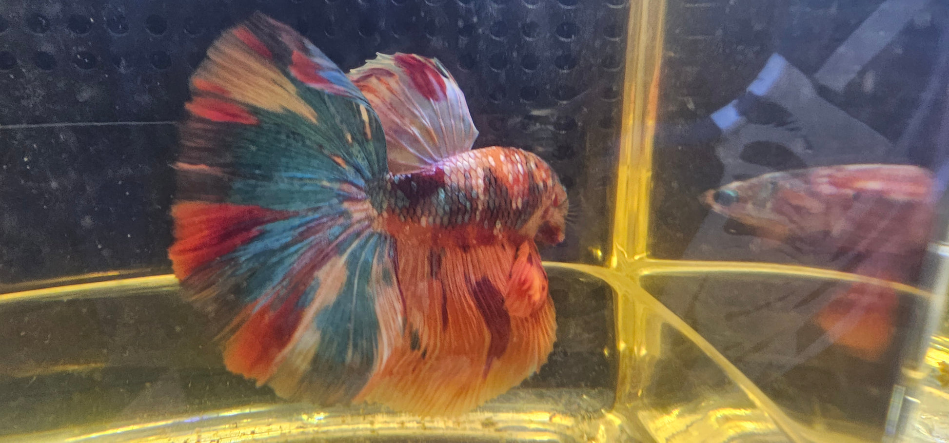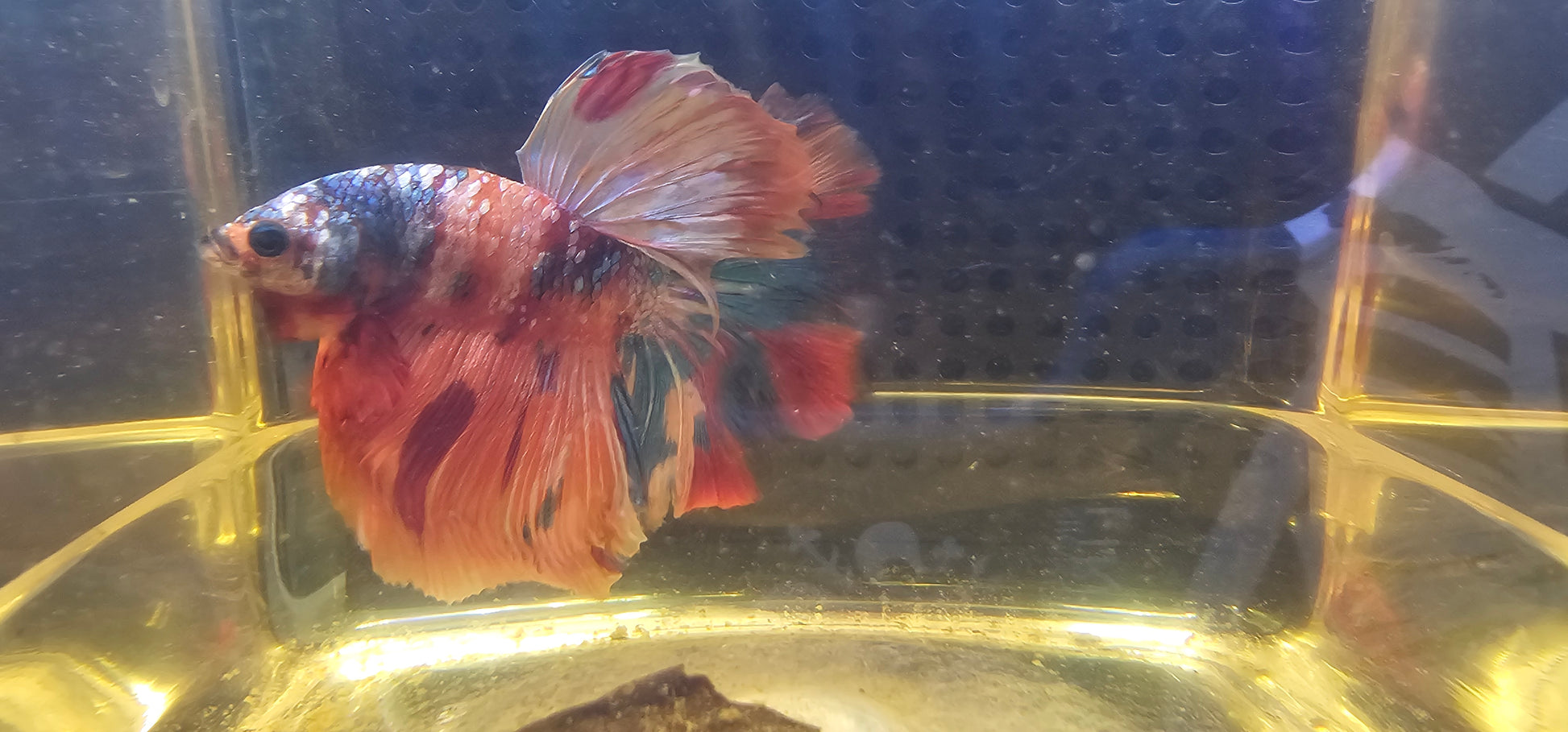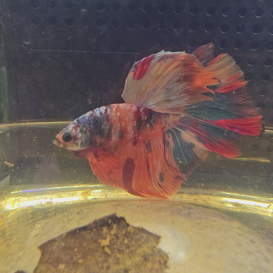 Maschio di Betta Halfmoon Galaxy con coda a rosa