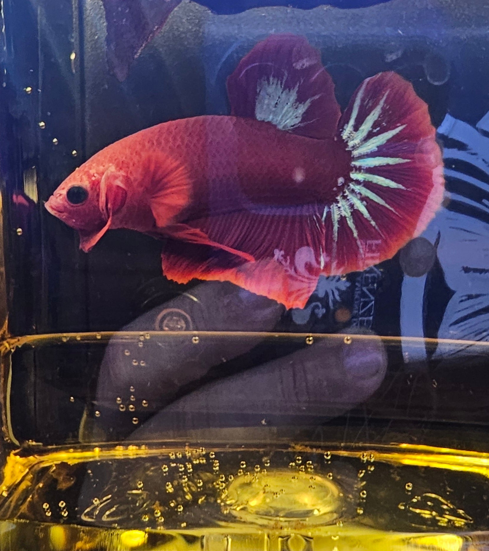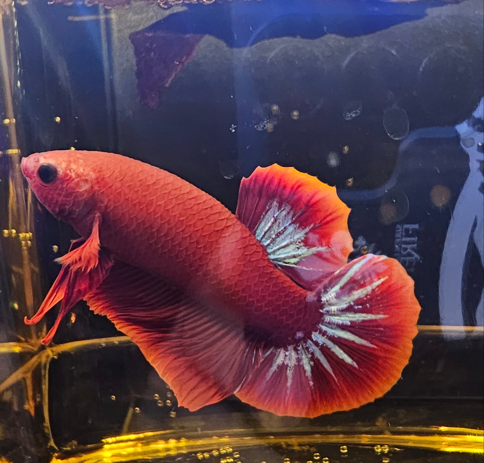 Colore: Corpo rosso vino intenso, privo di squame bianche; coda a forma di spada con raggi