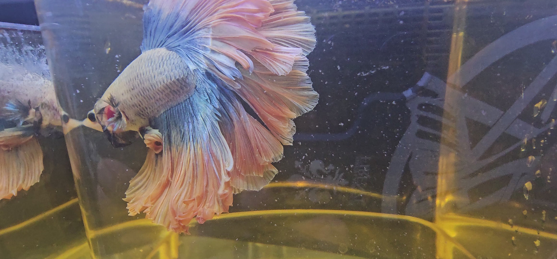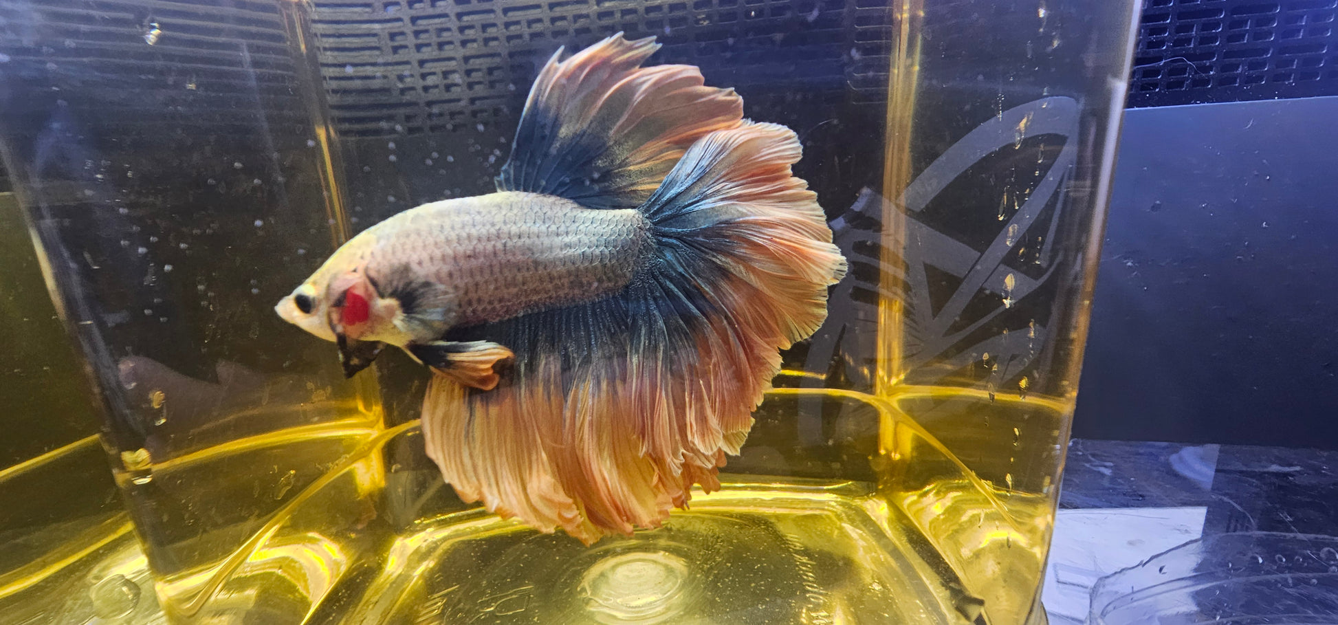 Un esemplare maschio quasi perfetto, con una coda ampia e strutturata come un petalo di rosa. Colorazione mustard intensa e affascinante. La sua pinna caudale è grande, elegante e ben distribuita.