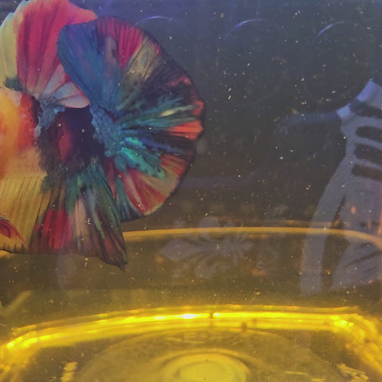 Un esemplare di dimensioni generose e in condizioni eccellenti. Il corpo è decorato da grandi blocchi di colore in stile arcobaleno, con sfumature vivaci e ben distribuite. La coda, ampia e fluida, forma una perfetta e spettacolare “C”.