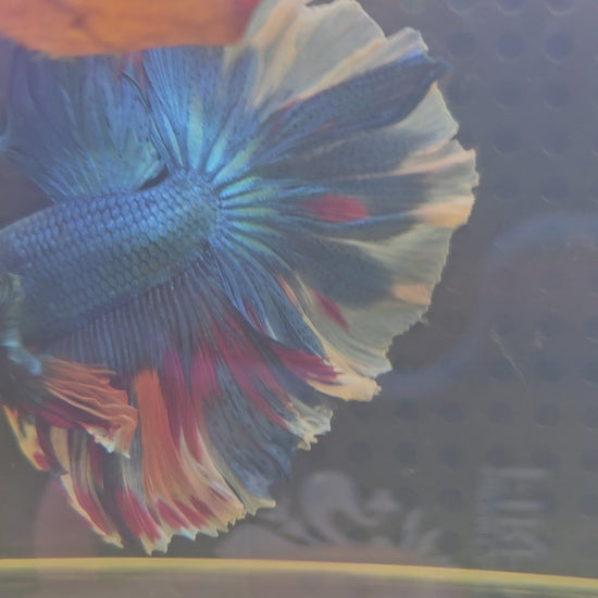 Maschio di Betta Halfmoon Blue Candy con coda a rosa