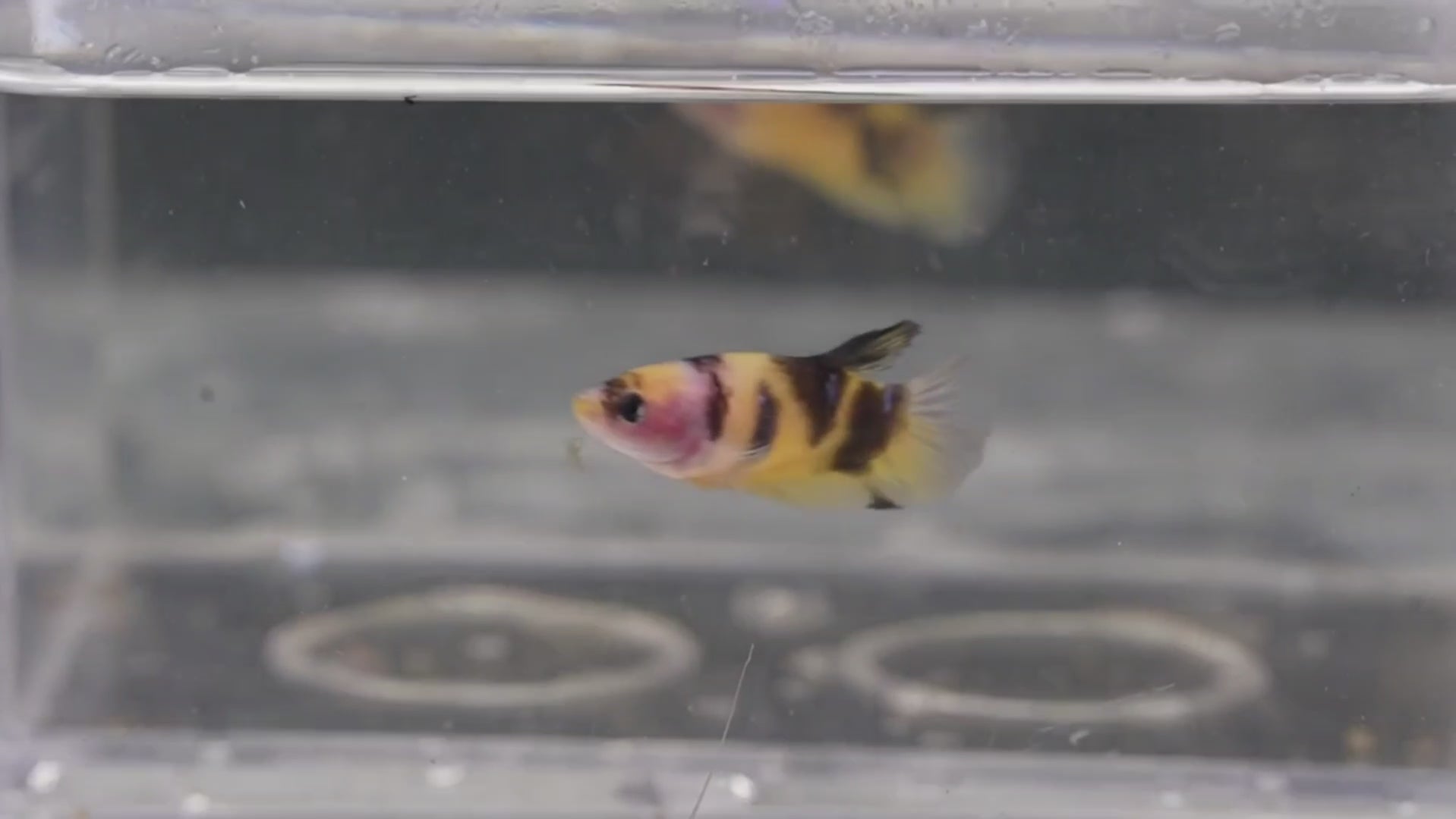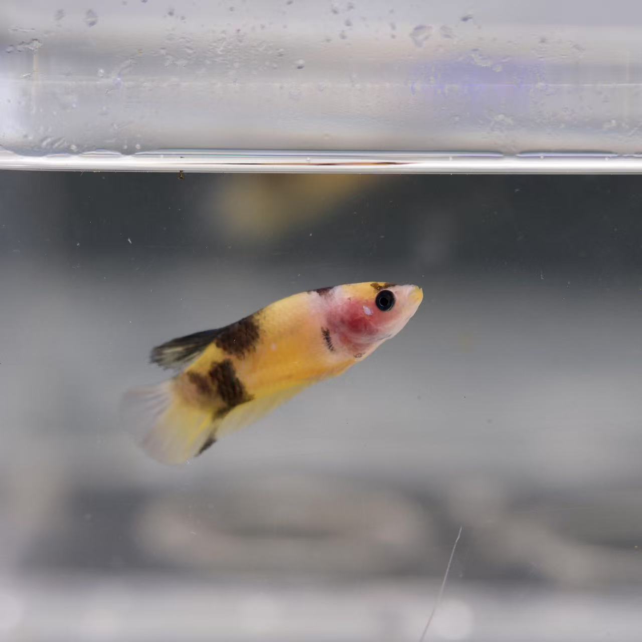 Una femmina dal colore di base giallo, arricchita da riflessi blu. Possiede una buona genetica e rappresenta una scelta adatta per chi si avvicina per la prima volta all’allevamento dei Betta o vuole iniziare a sperimentare con la riproduzione.